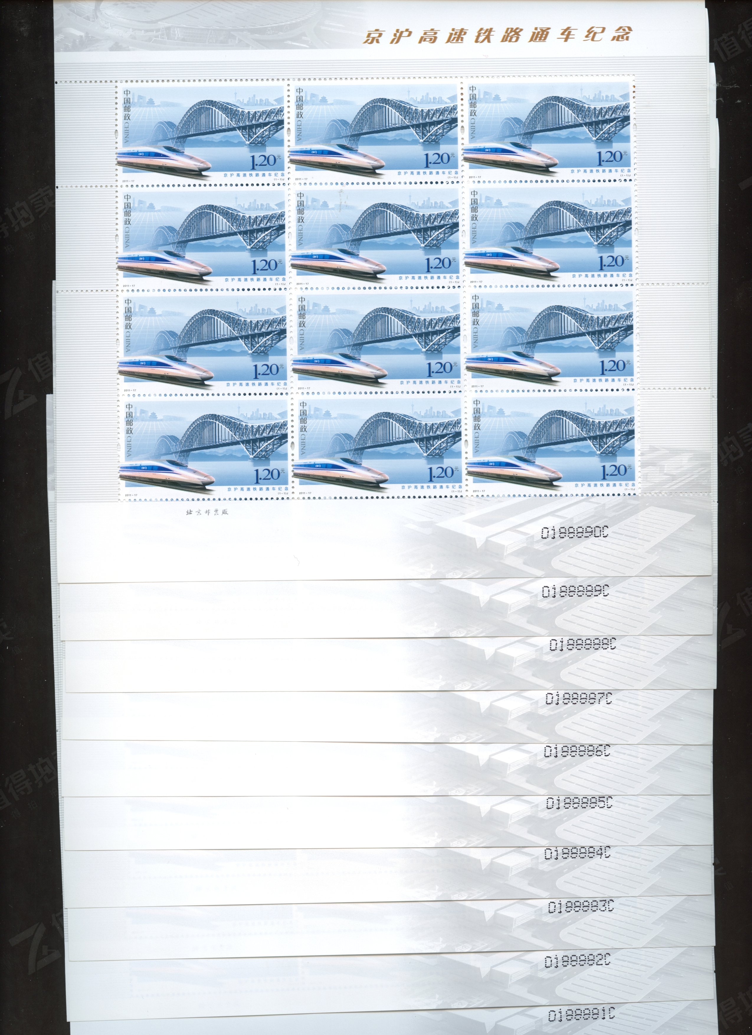 2011-17 11年京沪高铁大版(0188881-0188890十连号) 流水号:0188881C 流水号:0188882C 流水号:0188883C 流水号:0188884C 流水号:0188885C 流水号:0188886C 流水号:0188887C 流水号:0188888C 流水号:0188889C 流水号:0188890C