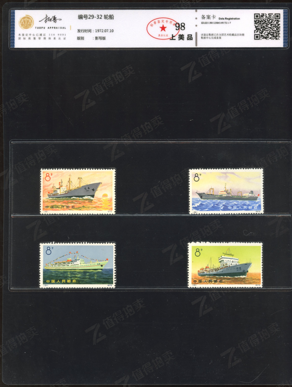 编29-32轮船套票 拓普鉴定 98分