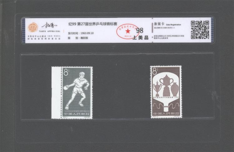 纪99 27届世乒赛套票 拓普98