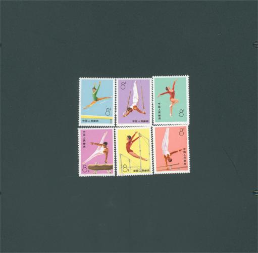 T1 体操运动套票 1有死折,4,,6硬折,其余三枚近全品
