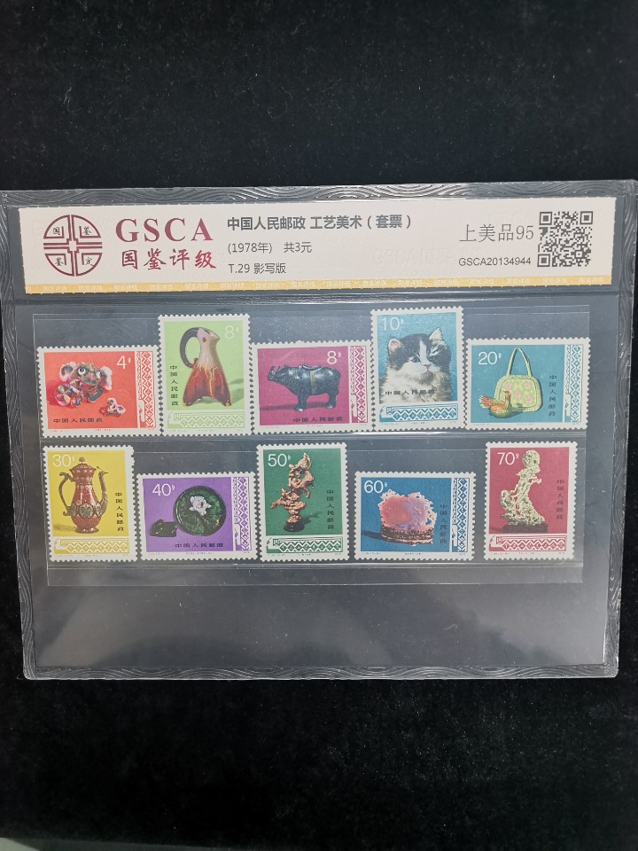 中国人民邮政,T29工美艺术,套票,10枚一套,已鉴定评级95高分