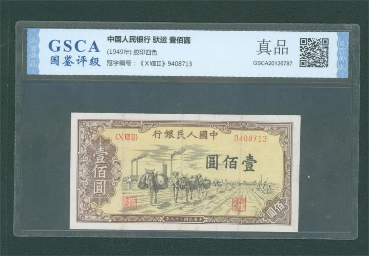 一版壹佰圆驮运 国鉴真品