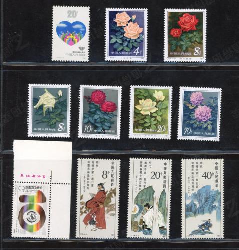 含:J136 徐霞客套票 J156 国际志愿人员日套票 J160 亚太电信组织套票(厂铭) T93 月季花套票 均受潮