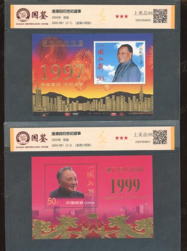 港澳双加字金箔小型张一对 国鉴三星98