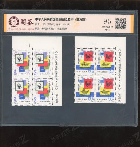 J63 中日邮票展览四方连(直角边)国鉴95