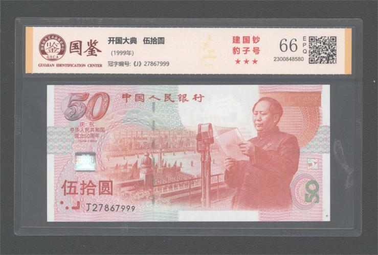 建国钞(999豹子号)国鉴三星66E,冠号:J27867999