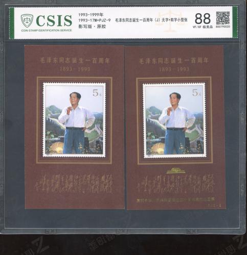 毛泽东诞生100周年(无字+加字)小型张 信泰88