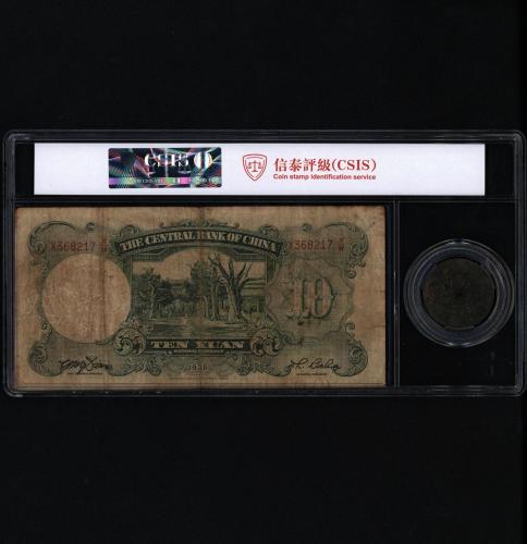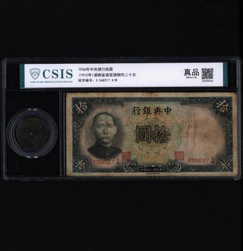 1936年中央银行十元 1912年湖南省造双旗铜币二十文