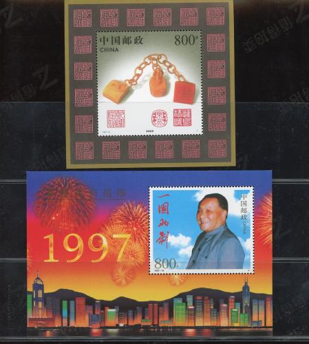 1997-10M 香港回归小型张 上品 1997-13M 寿山石雕小型张 潮斑
